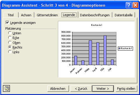 Diagramm anklicken: Diagramm-Assistenten aufrufen und Diagramm schrittweise (s. o.) nach Wunsch verändern / bearbeiten.