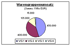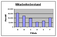 Nicht nur eine Tabelle soll übersichtlich und allgemein verständlich zusammengestellt werden, sondern erst recht ein Diagramm. Auf einen Blick sollen die Inhalte erfasst werden können!!! Deshalb: keinen "Schnickschnack" mit vielen verschiedenen Schriftarten/-größen, Hervorhebungen usw. Auch auf 3D-Diagramme sollte möglichst verzichtet werden. Diese Darstellungen sehen vielleicht manchmal etwas besser aus, aber die Erkennbarkeit leidet z. T. erheblich. Beispiel: |