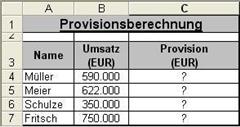 2. Teil: Der DANN-Wert Wenn die Bedingung wahr ist, wird der DANN_Wert ausgeführt. Hierbei gelten folgende Regeln: - Es kann sich hierbei um einen Wert, eine Formel oder eine Funktion handeln. - wird als Wert ein Text in die Zelle geschrieben, so muss dieser in Anführungszeichen gesetzt werden (z. B. „keine Provision“). - Soll das Ergebnis eine leere Zelle sein, so sind zwei Anführungszeichen direkt hintereinander zu setzen (z. B. „“).