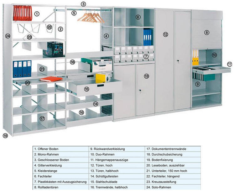Grafik 2: Fachbodenregal mit Zubehör weiteres Beispiel für den vielseitigen Einsatz dieses Regaltyps: